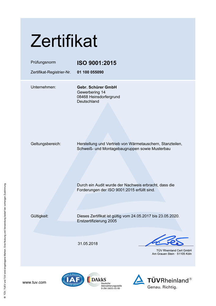 Wir sind zertifiziert nach DIN ISO 9001:2015 und sichern